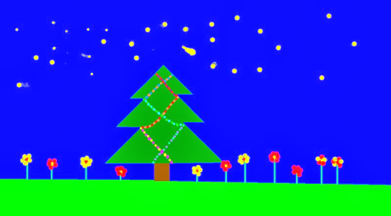 Christmas is approaching and Uncle Francis hung on a tree colored lights. Every night they lit up and the tree was happy.